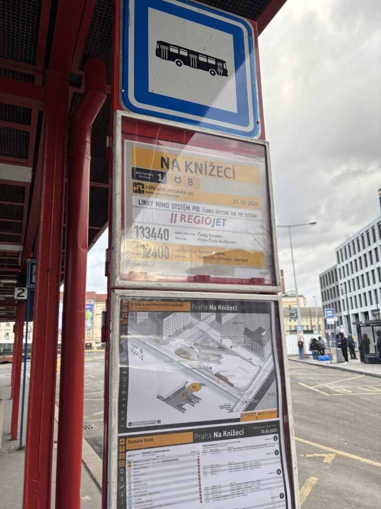チェスキークロムロフ行きのバス停が分かりずらい!