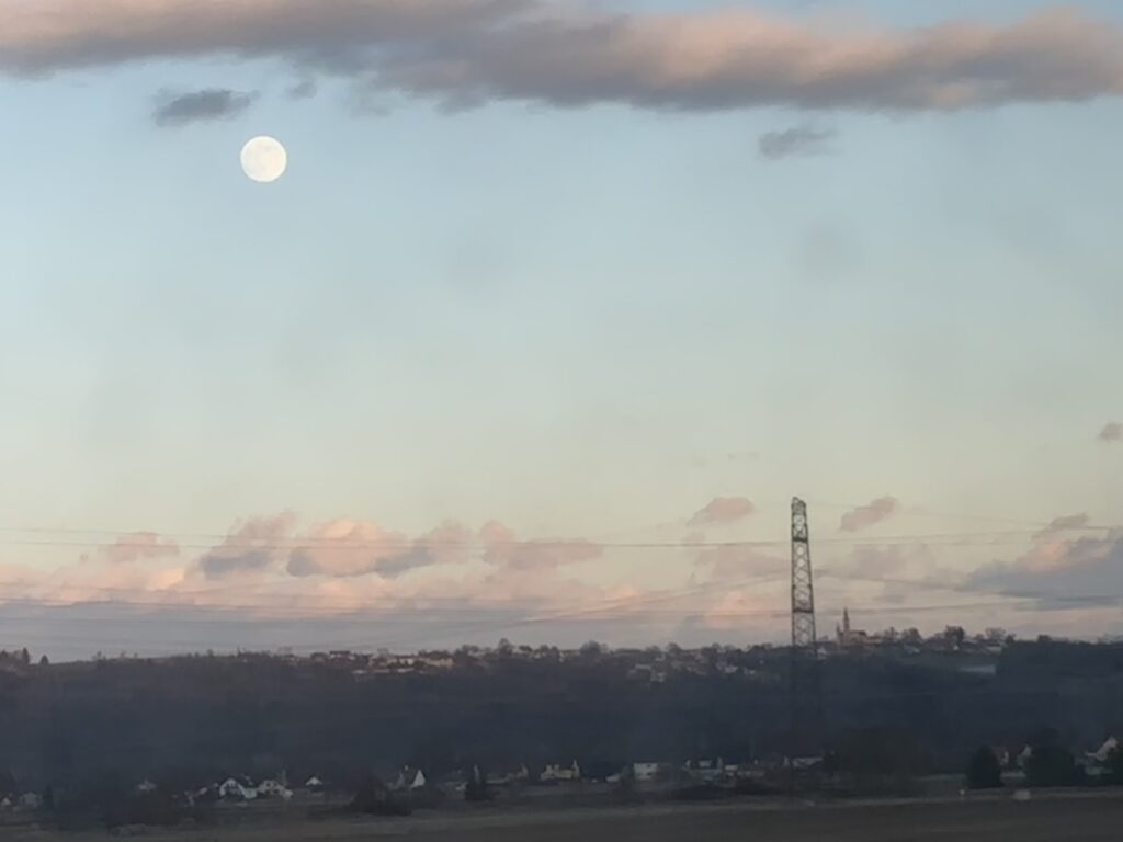 綺麗な夕焼けと満月を目の前にバスで向かう道中はとても幸せでした。