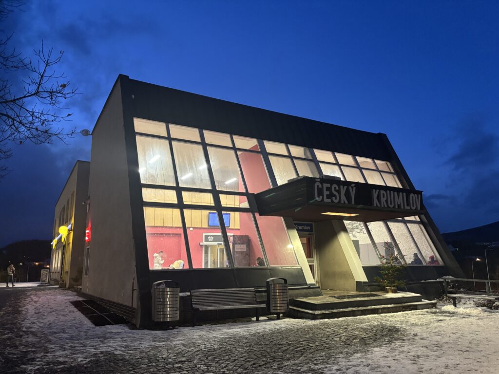 チェスキークロムロフのバス停はかなりこじんまりとしていた印象でした。