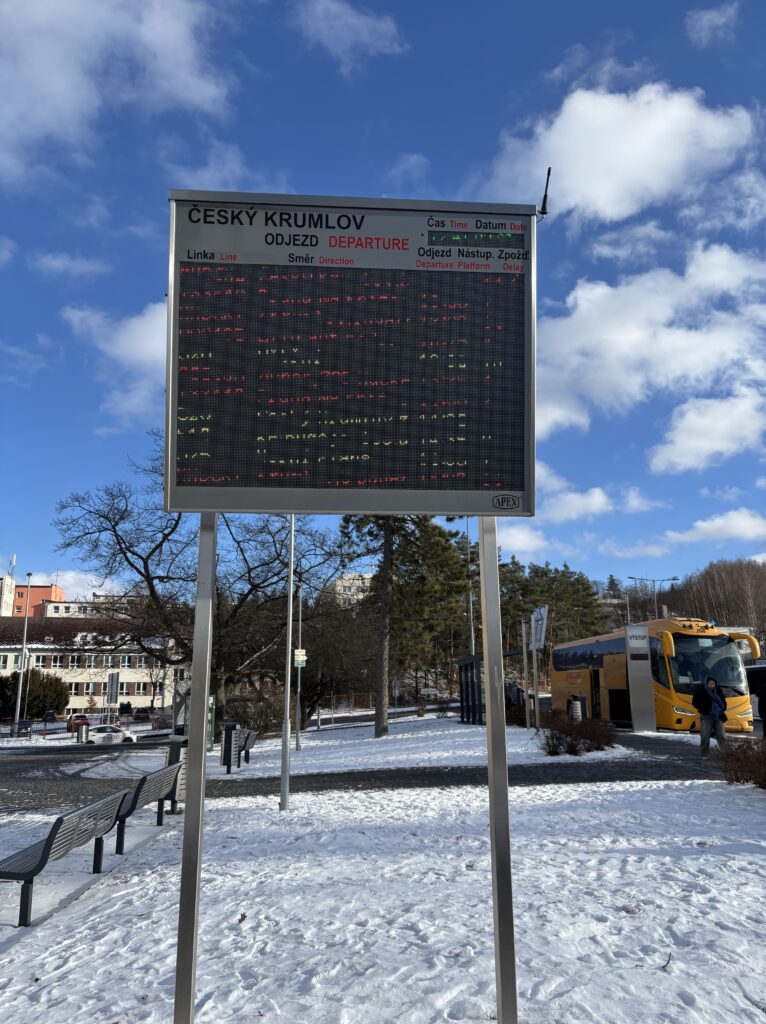 ターミナル思ったより広いし、どれがチェスキークロムロフ行きなのか分からん!