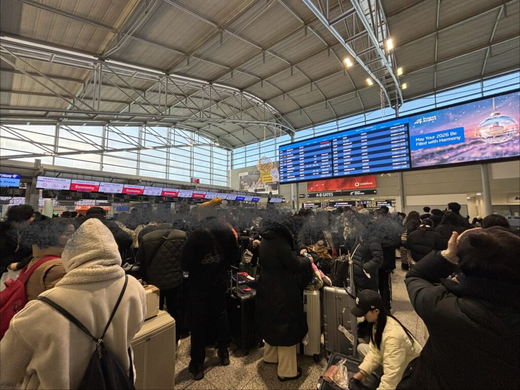 空港のアシアナ航空エリアの込み具合がえげつない。
