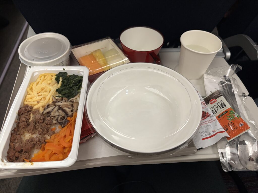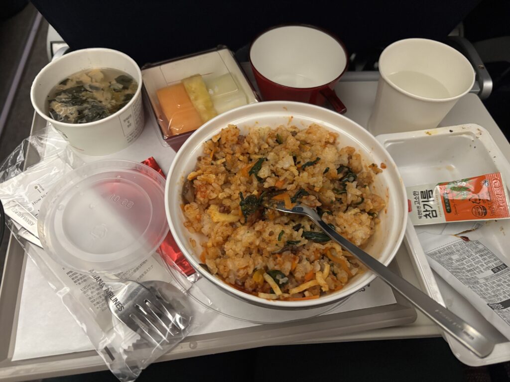 機内食の味は不味くはなかったのですが、やはり韓国感強めで攻めてきます。