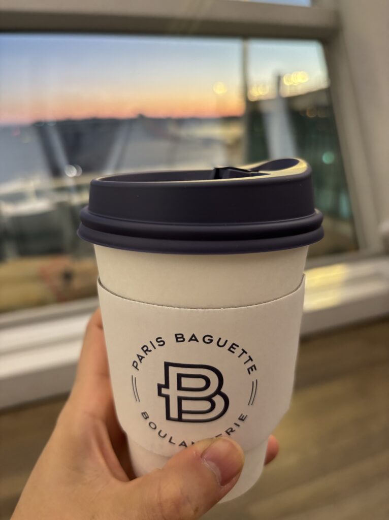 搭乗前にはコーヒーを飲みながら焼きたてパンを食べ、
