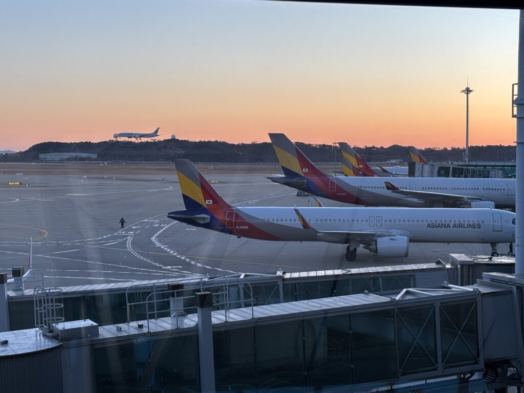 朝日とアシアナ航空の機体を眺めて残りの時間を過ごすことができました。